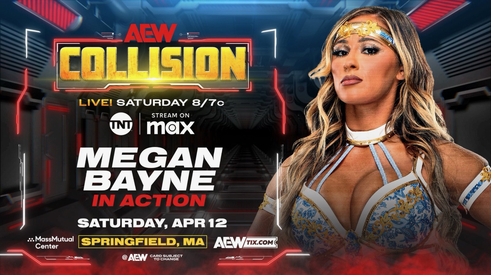 Back from the break, the music of Megan Bayne hits, as she makes her way to the ring with Penelope Ford.