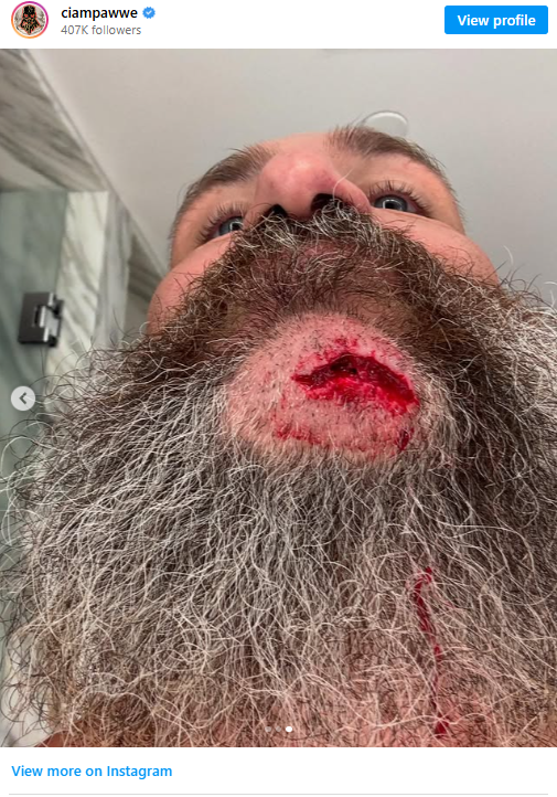Following an injury due to a fall on Saturday, Tommaso Ciampa had to shave off his beard.