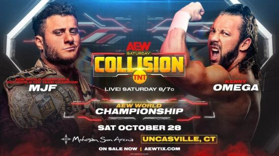 The bell rings and we are underway with holy s— chants…both men lock up as MJF is spun around and has Omega in an armbar. It was noted that Omega had the longest reign of any world champion. MJF is down on the mat as Omega picks him up. Both men walk away as they walk around the ring…Both men lock it up again as the crowd is split on who to cheer for. Omega sends MJF to the ropes as he goes down to avoid MJF who walks over Omega…Omega takes down MJF with a side headlock as MJF reverses it with a head scissor…both men are up as he tells the fans to be quite. MJF puts out his hand and says sportsmanship. We get a sportsmanship chant…both men shake hands as MJF pokes Omega in the eyes to a mixed reaction. Omega then sends MJF to the floor. Omega leaps over the top and lands on MJF! Omega picks up MJF and tosses him back in the ring, but MJF leaps over the top rope and lands on Omega to the outside, as the fans chant holy s—! Both men are back in the ring as Omega lands a crossbody on MJF. MJF picks up Omega and drops him in an awkward landing. The match continues as MJF has Omega in a headlock. The ref checks on Omega. Omega is up as MJF still has him in a headlock. Omega gets out of the hold as he nails rights hands on MJF to the side of the head. MJF then drops Omega on his head with what looked like a short DDT. MJF covers Omega for just a two count! MJF poses a bit, as Omega drops MJF. As MJF is up, Kenny drops MJF with polish hammers. Omega then drops MJF with a bulldog type move. Omega cover the champ – 1 – 2 – NO! MJF kicks out! Omega and MJF fall to the outside as the fans again chant holy s—! Omega favors his shoulder. MJF is back in the ring. Omega goes to the top and hits MJF with drop kick to the back of the head of MJF…Omega covers him, but the champ kicks out at two! MJF takes command now as he nails Omega with a series of rights and then bites Omega on the head! MJF then arm whips Omega into the turnbuckle. MJF signals for the kangaroo kick and hits him with it as Omega rolls to the outside…Omega is back in and nails MJF. Omega covers MJF for just a two count! Omega signals for the V-Trigger, but MJF rolls to the outside and gets up and falls against the announnce table. Omega grabs a table from under the ring. Omega sets it up and then rolls up MJF for a two count, as both men do a series of pin attempts. Kenny picks up MJF and powerbombs him into the turnbuckle…MJF comes back and drops Omega with a lariat as both men are down. The ref begins the ten count. MJF is up first at seven. MJF is on the ring apron and point to the table. Omega is up as both men are fighting on the ring apron. Kenny kicks Omega and grabs him and drops him on his neck on the ring apron…Omega is up as he looks at the table. Kenny picks up MJF as he looks to powerbomb off the apron…Kenny picks up MJF as he powerbombs MJF throught the table! We go to a 90 second picture-in-picture break. They show a reply of Omega and MJF crashing through the table! Both men are still down as medical staff checks on each of them. The ref and the medical staff are assisting Omega and trying to help him up.