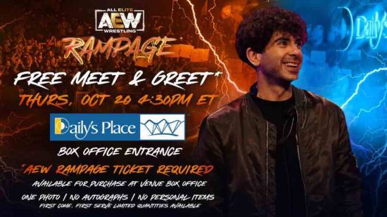 There will be a meet and greet with AEW President Tony Khan this Thursday afternoon in aat the Daily’s Place Box Office in Jacksonville, Florida.