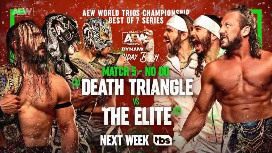 -Death Triangle vs. The Elite in a No DQ Match: This will be match 5 in the best of 7 series for the AEW Trios Championships
