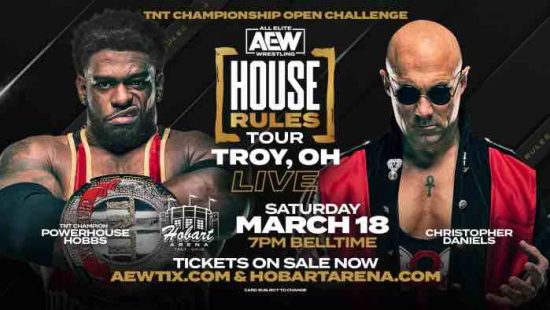 AEW announced on Twitter Friday night that Powerhouse Hobbs will defend the TNT Championship against Christopher Daniels, at the House Rules event on Saturday.