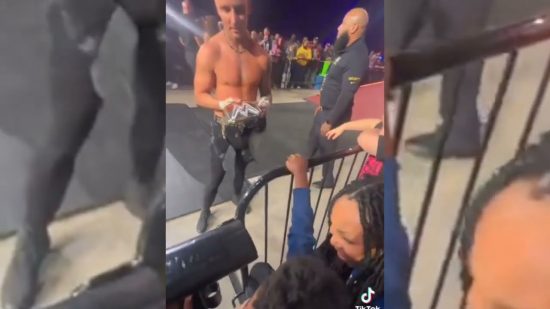 A video has been making the rounds with AEW star Darby Allin signing a replica WWE Title Belt for a young fan at the most recent AEW Dynamite show. As Darby walks to the back, the young fan gives Allin the belt for him to sign.