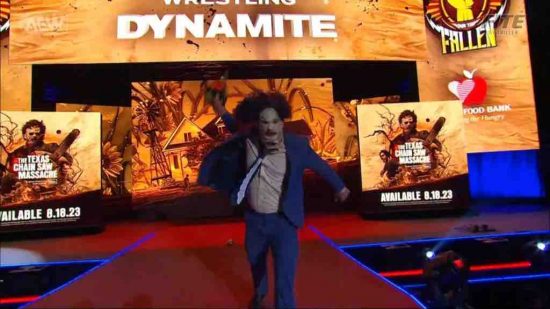 Leatherface made a special cameo on Wednesday night’s AEW Dynamite, live from the Bridgestone Arena in Nashville, TN.