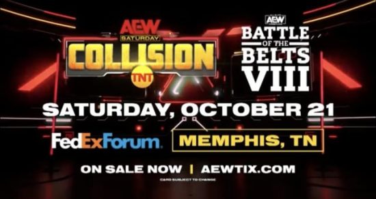 Both shows will take place at the FedEx Forum in Memphis, TN, live on TNT. Battle of the Belts VIII will air immediately following Collision.