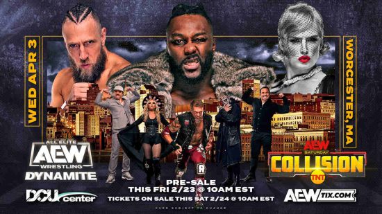 AEW announced a double taping set for 4/3 from Worcester, Massachussetts, featuring a live edition of Dynamite and a taped Collision from the DCU Center.