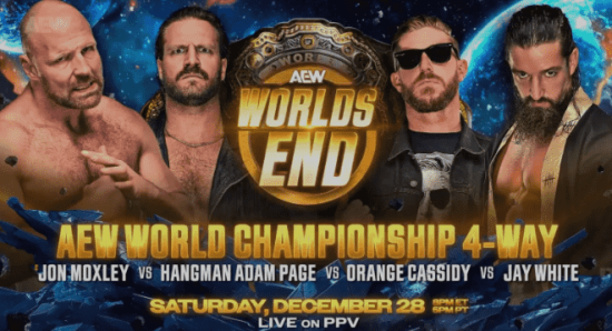 Jon Moxley will defend the AEW World Championship in a Four-Way Match against Hangman Page, Orange Cassidy and Jay White at the Worlds End pay-per-view.