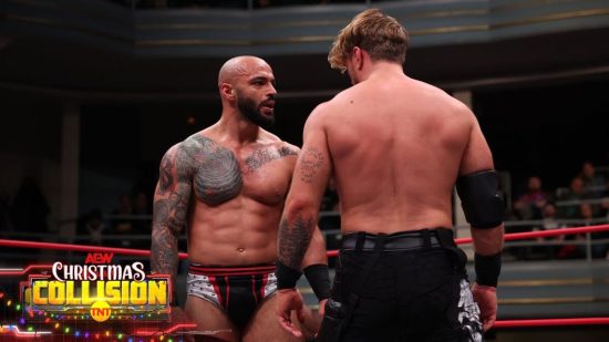 The “Christmas Collision” episode, emanating live from Hammerstein Ballroom in Manhattan and featuring Continental Classic matches, scored a 0.20 rating in the key demo, up from last week’s rating of 0.09.