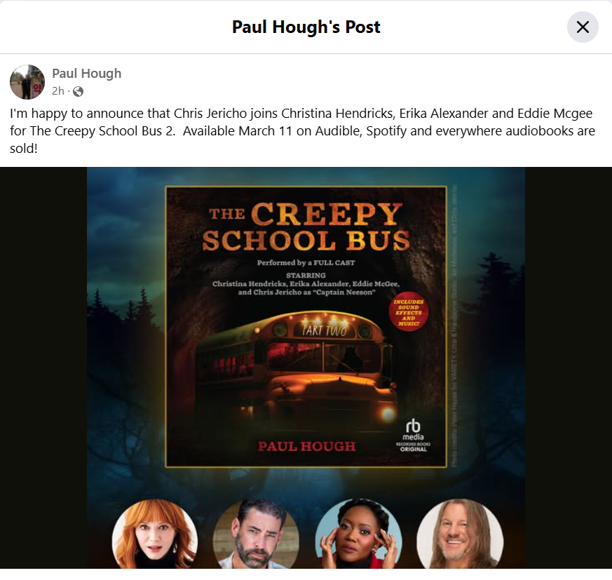 AEW star and current ROH World Champion Chris Jericho is part of the cast for the new audio book, ‘The Creepy School Bus Part Two.’ He plays the role of “Captain Neeson.”