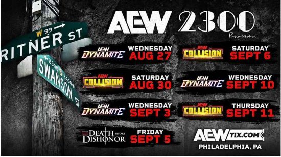 AEW has announced they will host an exclusive multi-week residency August 27 through September 11 at 2300 Arena in Philadelphia, with episodes of Dynamite, Collision and the ROH Death Before pay-per-view.