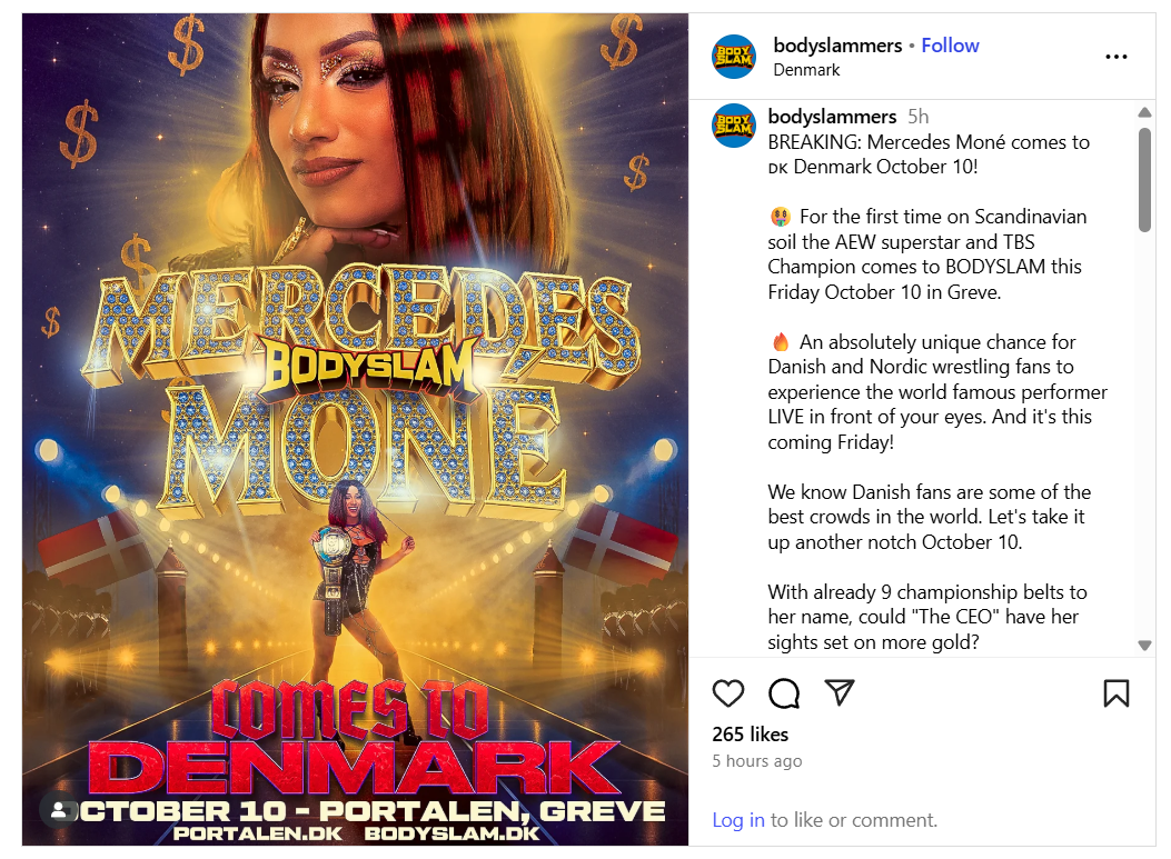 AEW TBS Champion Mercedes Mone’ is heading to Denmark.
