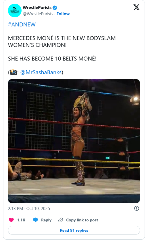 Mone’ defeated Aliss Ink at the Bodyslam event in Denark on Friday, to win the promotion’s Women’s Championship. Mone’ now has officially tied Ultimo Dragon for holding the most titles belts simultaneously.