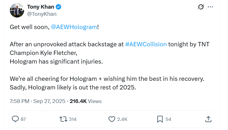 AEW head Tony Khan later announced on X, that Hologram would likely be out the rest of this year.