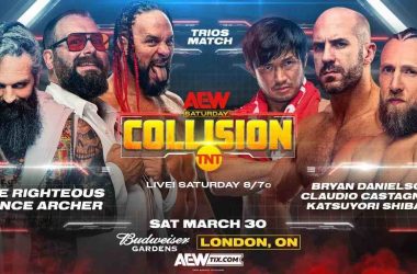 AEW Collision ResultsMarch 30, 2024Budweiser Gardens in London, Ontario, CanadaResults by: Jerome Wilen of Wrestleview.com We go live…