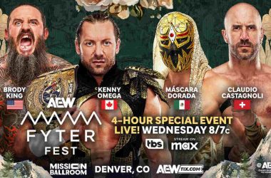 During Saturday’s episode of Collision, AEW announced matches for Wednesday’s 4-hour Dynamite/Collision Fyter Fest special on TBS and…