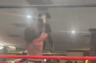 Former WWE talent sends opponent through ceiling at independent event