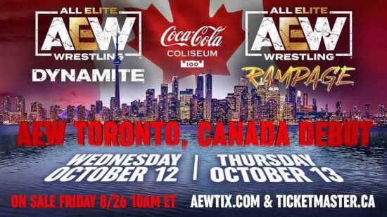The Coca-Cola Coliseum in Toronto will host a live Dynamite on Wednesday, October 12 and a special Rampage taping on Thursday October 13.