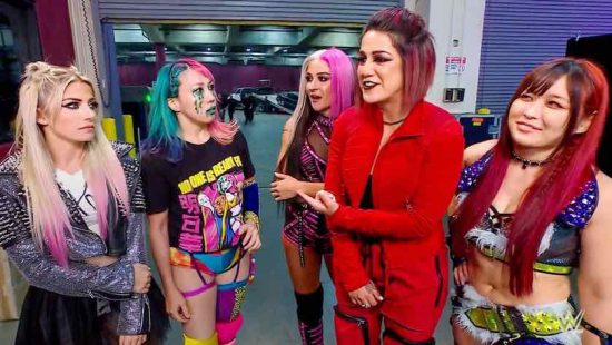 Bayley, Dakota Kai and IYO SKY were in the ring as part of the promo segment. After Bayley called the fans stupid idiots, she made the mistake and then acknowledged it, by telling the fans they needed to shut up so she could think.