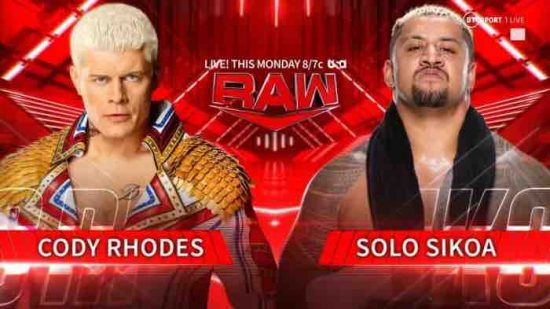 Cody Rhodes vs. Solo Sikoa has been announced for this Monday’s Raw, which is the go-home show for next weekend’s WrestleMania 39.