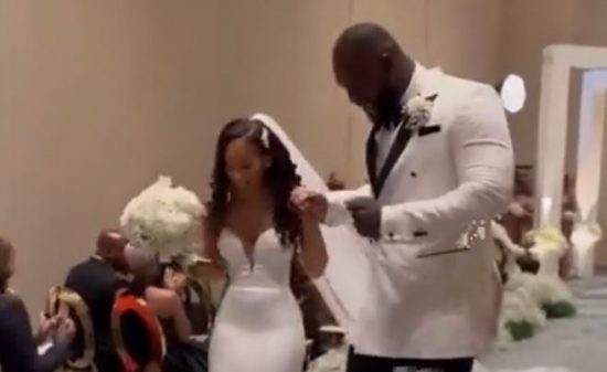 WWE Superstar Omos (real name Tolulope “Jordan” Omogbehin), married his longtime girlfriend Cheyenne Quailey over the weekend at the Gaylord Palms Resort & Convention Centre in Kissimmee, Florida.
