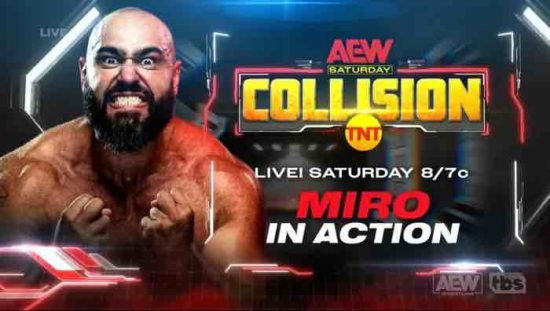 In addition to the return of CM Punk, for the first time since last September’s All Out pay-per-view, Miro will be in action as part of this Saturday’s AEW Collision premiere episode, live on TNT.