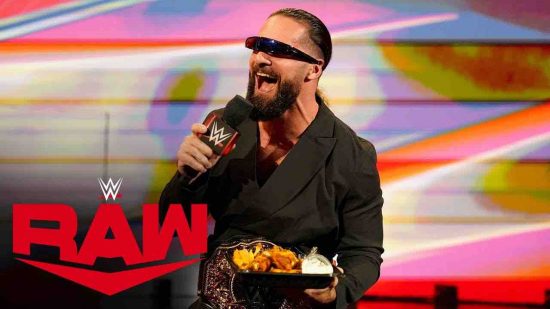 Seth “Freakin” Rollins taunts “Dirty” Dom with some Buffalo wings