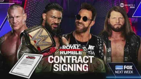 WWE has announced a Royal Rumble contract signing set for the January 19 episode of SmackDown with Roman Reigns, Randy Orton, LA Knight, and AJ Styles.