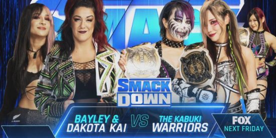 WWE has announced that Dakota Kai and Bayley vs. the WWE Women’s Tag Team Champions The Kabuki Warriors (Kairi Sane and Asuka) on next Friday’s episode of SmackDown, live on FOX. This will be a non-title match.