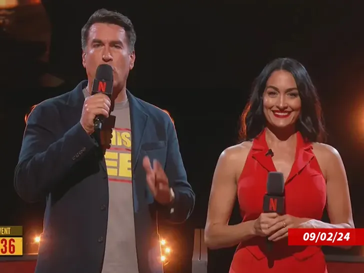 Nikki has not been wearing her wedding ring since the incident took place. She hosted the Chestnut/Kobayashi hot dog eating contest over the weekend in Vegas, and her finger was bare, as seen in the photo below, courtesy of Netflix and TMZ.