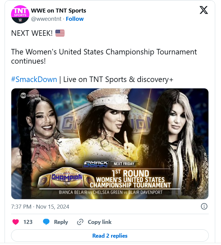 Next week’s show will see the first round triple threat match with Chelsea Green vs. Bianca Belair vs. Blair Davenport.
