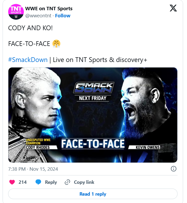 Also set for next week’s show is Kevin Owens and Cody Rhodes going face-to-face.