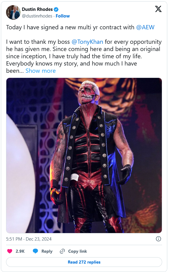 Dustin Rhodes has taken to social media to announce that he has signed a new multi-year with AEW and will finish career with the promotion.