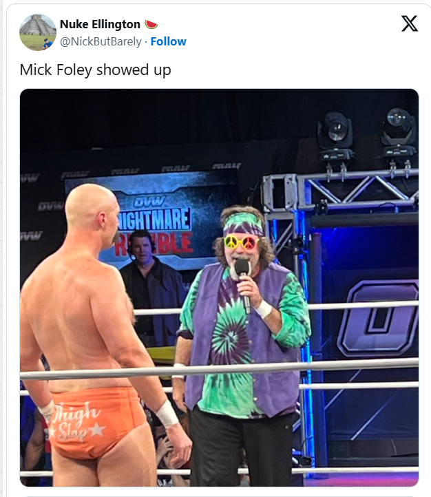 WWE Hall of Famer Mick Foley, as his former Dude Love persona, made a surprise appearance at the OVW Nightmare Rumble on Saturday night.