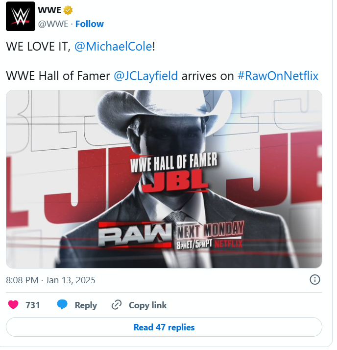 Next Monday’s WWE Raw takes place from the American Airlines Center in Dallas, Texas, airing live globally on Netflix beginning at 8:00 pm ET/5:00 pm PT.