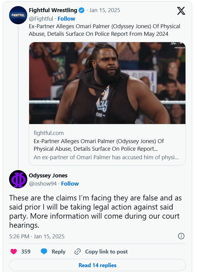 -The ex-partner says WWE conducted its own investigation into her claims and ultimately fired Palmer in September 2024.  WWE did not confirm or comment on Palmer’s release from the company. The ex-partner expressed to POST Wrestling her gratitude toward WWE for taking her allegations seriously, stating they contacted her to discuss the matter during the time of their investigation.
