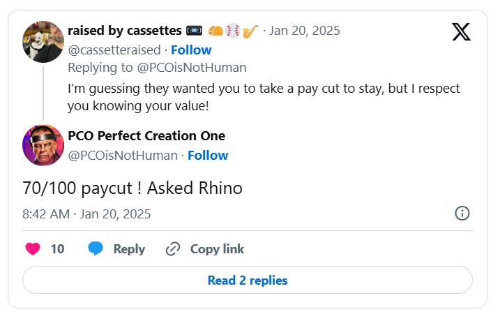 He noted in his response to a fan that he was asked to take a pay cut by TNA and to ask Rhino.