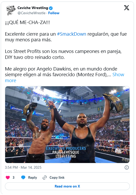 The Street Profits (Montez Ford and Angelo Dawkins) defeated #DIY at Friday’s WWE SmackDown, which took place at the Olimpic Arena in Barcelona, Spain.