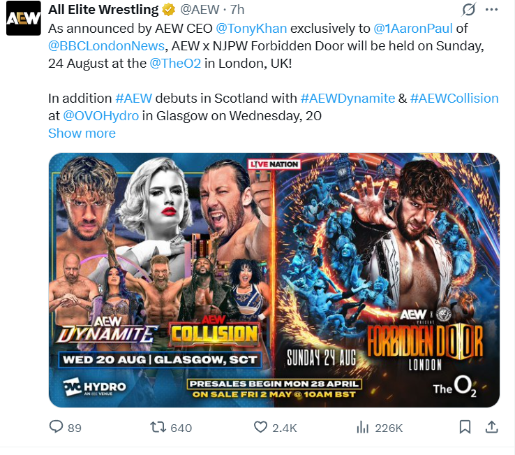AEW Collision SPOILERS: Taped 4/1 to air on 4/2