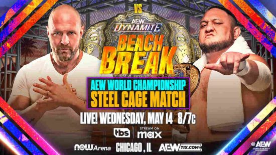 The AEW World Title Match between Jon Moxley and Samoa Joe at the Beach Break special on May 14 at the NOW Arena in Hoffman Estates, Illinois, will happen inside of a steel cage.