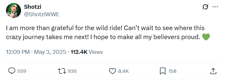 Shotzi took to X, confirming the news that her deal with WWE was not being renewed.