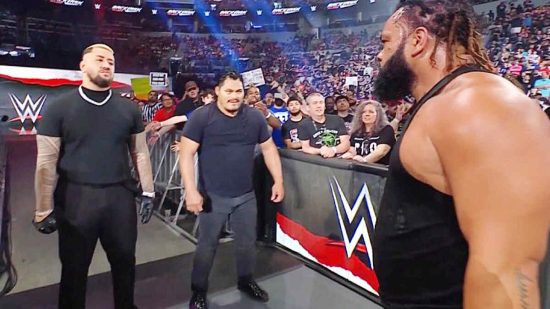 Back to ringside, Knight drives Fatu into the ring apron before sending him headfirst into the ring post. Knight bounces Fatu off the commentary table. A piece of the table falls off, so Knight strikes Fatu with it. Knight lays Fatu on the table and heads to the second rope. Solo Sikoa runs to ringside and pulls Fatu off the table. The crowd loudly boos him. Knight approaches Sikoa, but someone from the crowd blindsides him. It’s Jeff Cobb! The crowd goes wild for Cobb. Cobb sends Knight into the ring post and the barricade a few times. Cobb avalanches him against the ring post. Cobb sends Knight into the ring. Fatu looks confused to see Cobb and angrily looks at Sikoa. Sikoa motions toward the ring, but Fatu looks reluctant to get inside. Fatu eventually gets in and hits Knight with a running hip attack. Fatu hits Knight with a double jump moonsault for the victory.