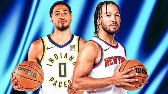 The graphic features Ty Halliburton and Jalen Brunson, who briefly shared the screen together on WWE SmackDown, along with a picture of Madison Square Garden and a “Pacers vs. Knicks” logo paying homage to the poster for WrestleMania X-Seven.