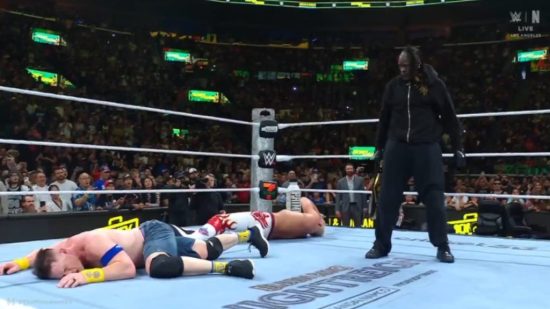 After R-Truth had recently announced WWE was not renewing his contract, he showed up at Saturday’s Money in the Bank PLE, spearing John Cena in the ring and then hitting him in the head with the title belt, to give Cody Rhodes and Jey Uso the win over the Undisputed WWE Champion and Logan Paul.