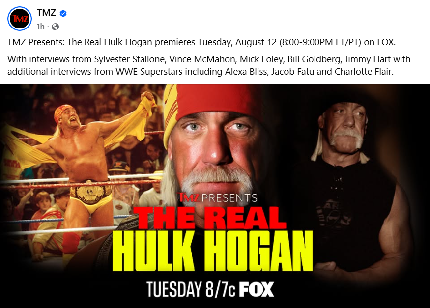 TMZ Presents: The Real Hulk Hogan, which will premiere on FOX Tuesday, August 12 from 8:00-9:00 pm ET/PT.