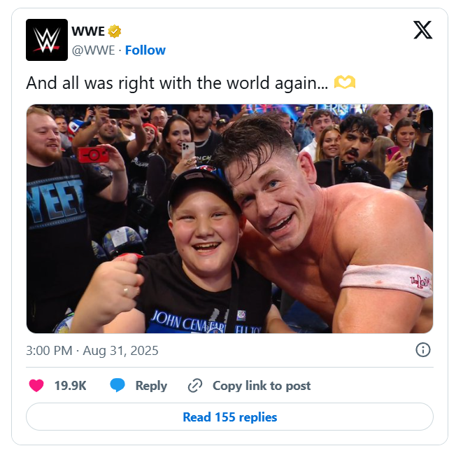 Cena defeated Logan Paul at Clash in Paris and is scheduled to appear on the episode of SmackDown from the Allstate Arena in Rosemont, Illinois on Friday, September 6.