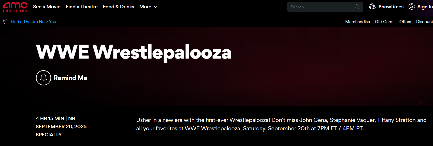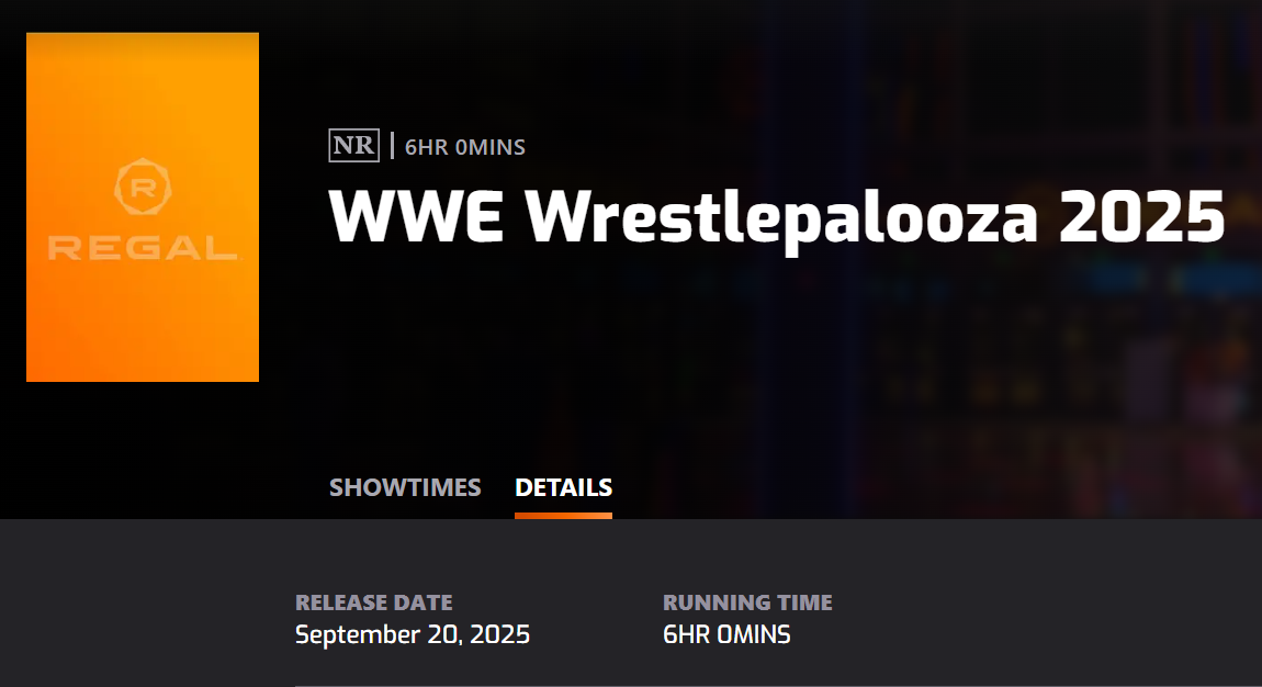 Regal Cinemas has select theatres in New York listed as showing WWE Wrestlepalooza live on Saturday, September 20.