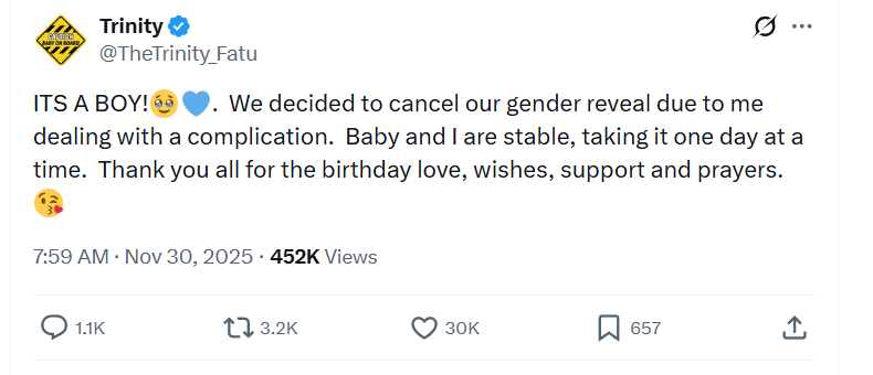 Naomi also notes that she and Jimmy decided to cancel their gender reveal event due to a complication she is dealing with. She also said that she and the baby are stable and taking things one day at a time.