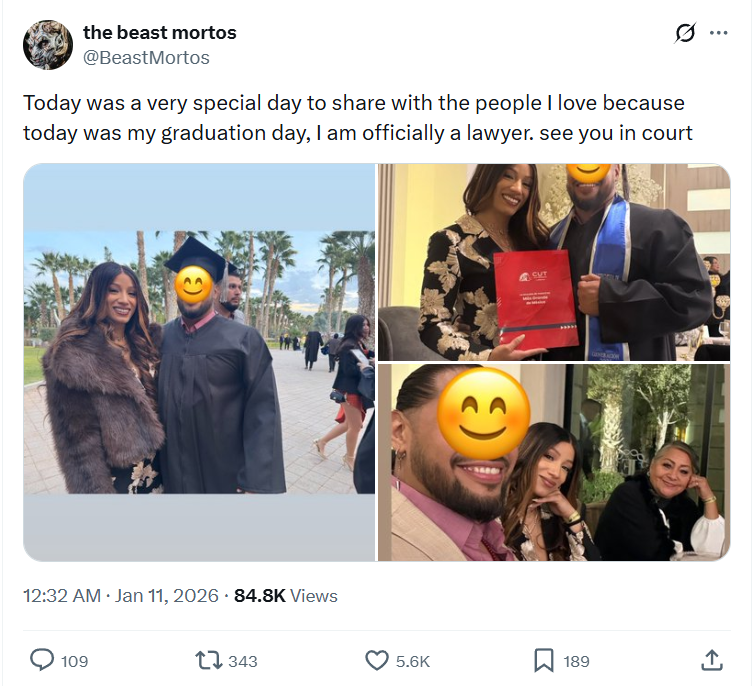 AEW talent The Beast Mortos has graduated from law school and is now officially a lawyer.