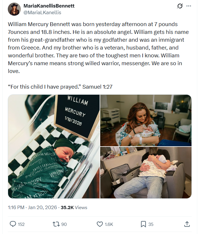 Former AEW and ROH star Maria Kanellis welcomed their third child into the world.