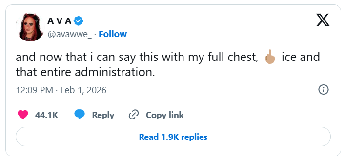 Following her exit from WWE, Ava took to social media on Sunday to post a message about ICE and the Trump administration.